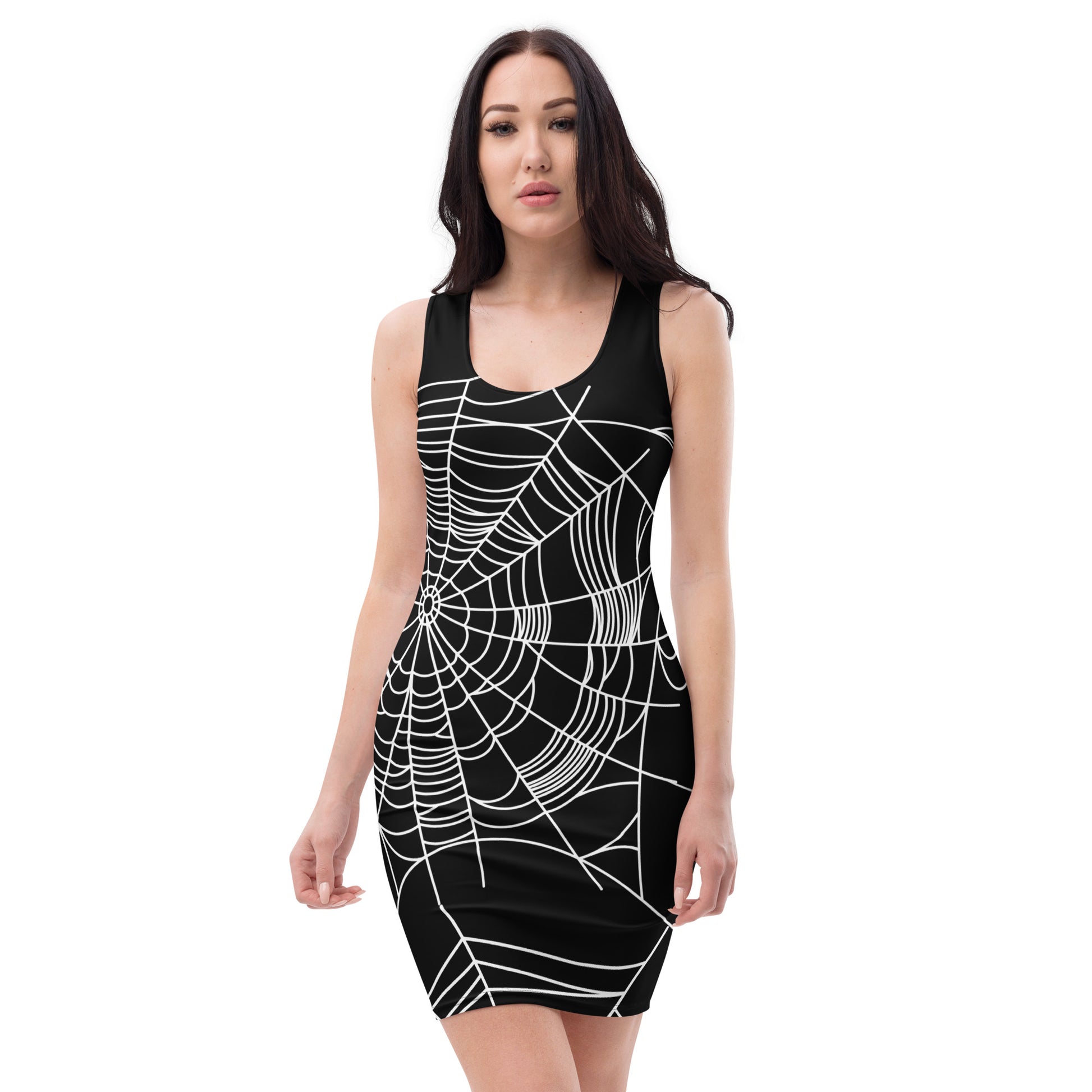 It's Spooky Season! Make a statement and look fabulous in this all-over printed, fitted dress. We laid out the spider webs to be printed in flattering places on this garment, we hope you love it!