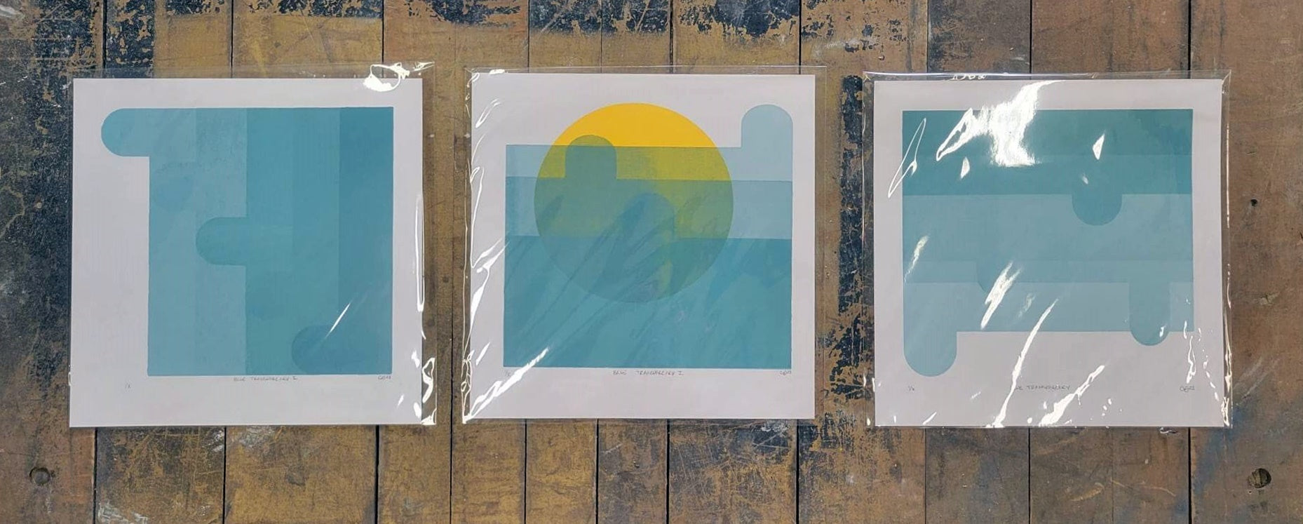Blue Transparency I, II, III - Screen Printed Art Series, Set of 3 Prints