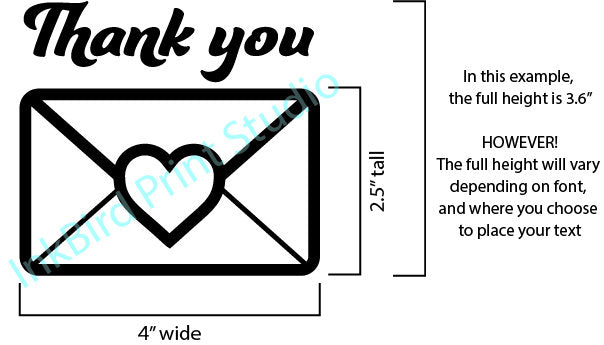 A vinyl cut decal featuring the words "Thank You" and an envelope with a heart in the center.