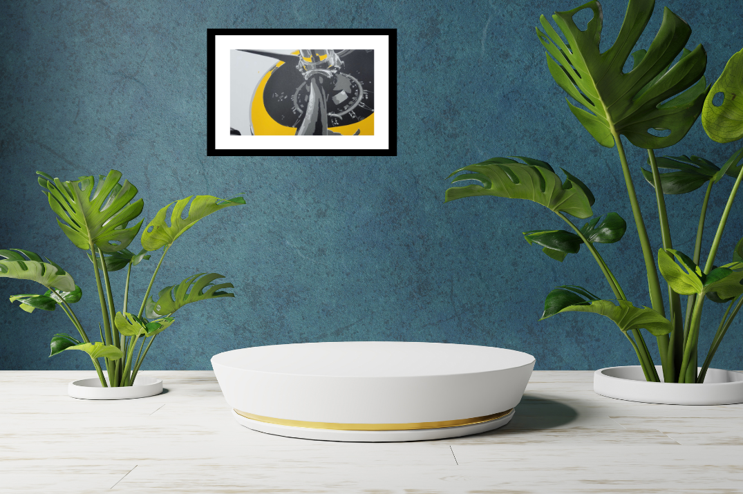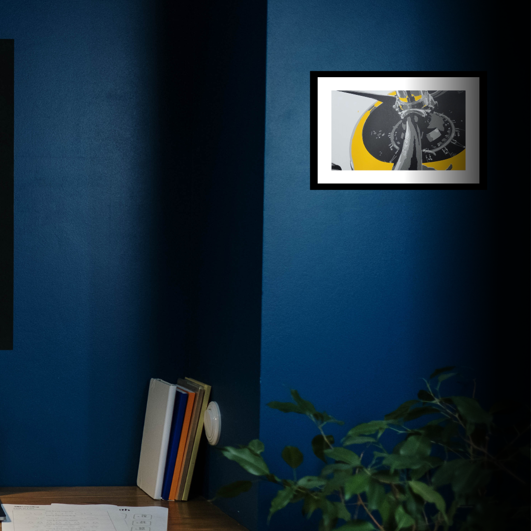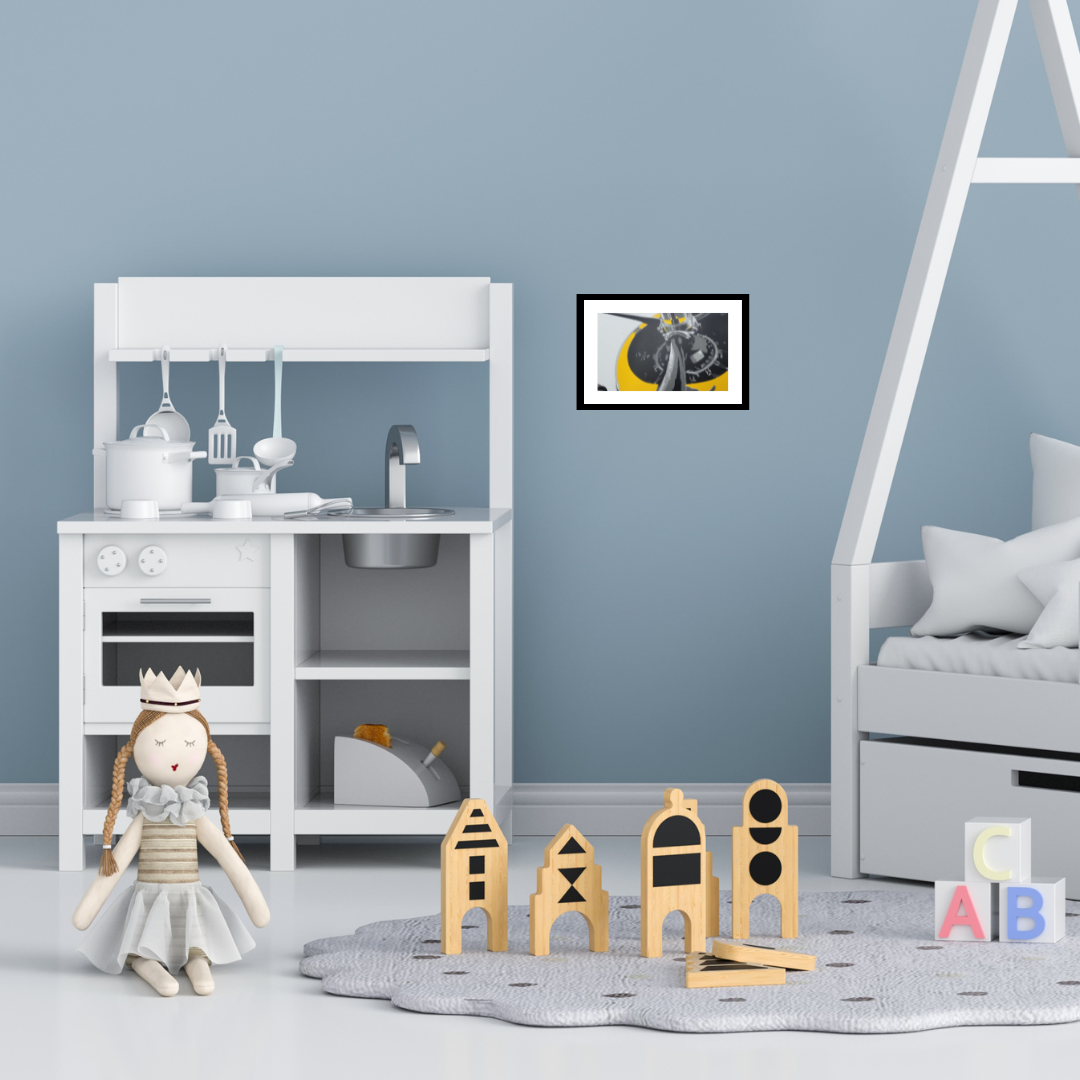 12" wide, 7.25" tall, printed in bright yellow, with tonal greys and stark black, this piece is colorful enough for a children's room, or a great gift for the WWII history buff in your life.